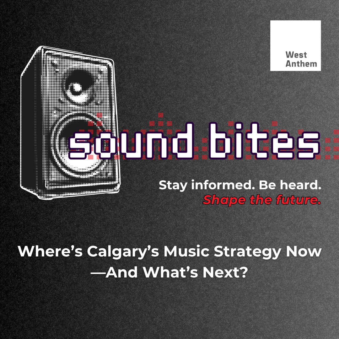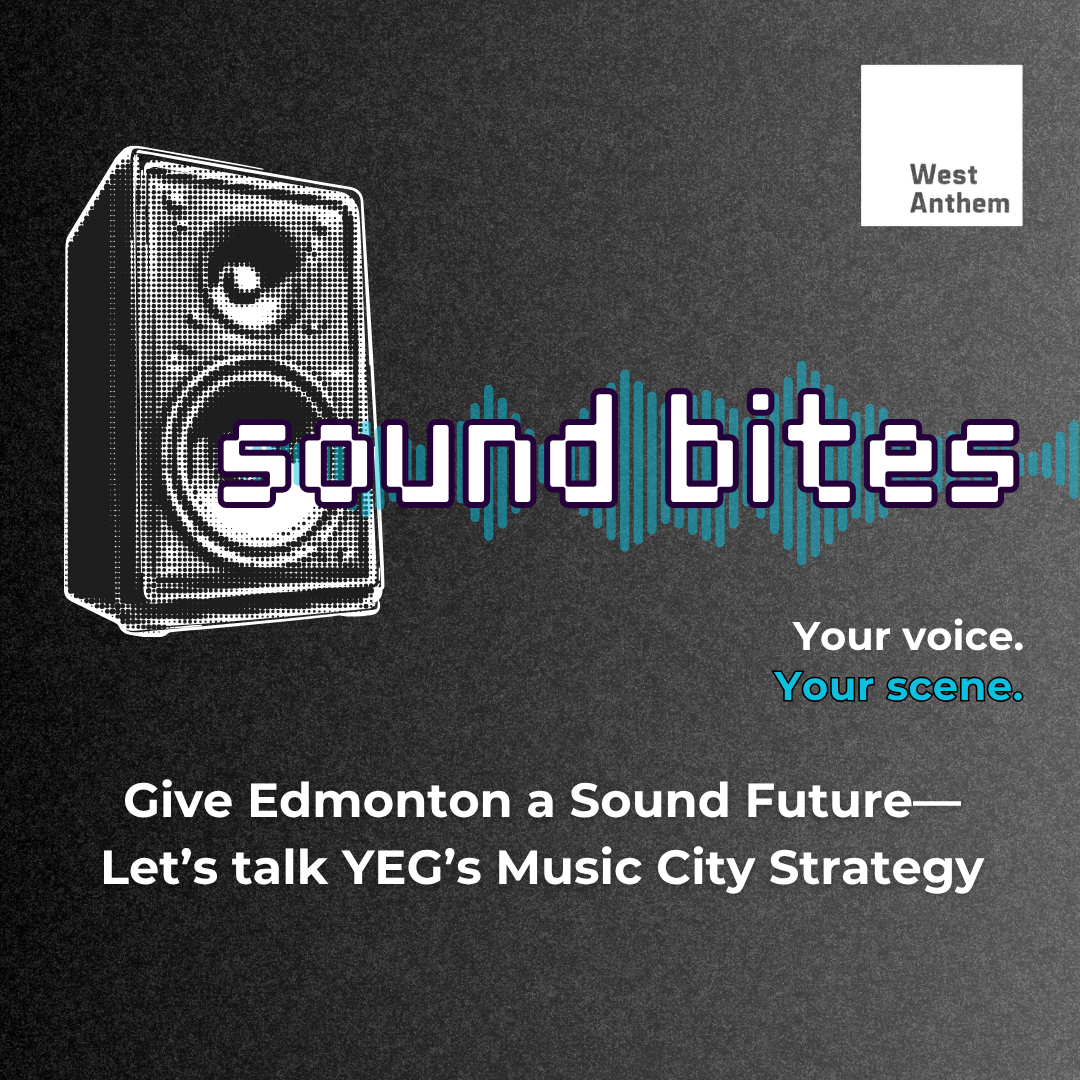 Introducing “Sound Bites”, a lunch time chat where music industry members and musicians can connect with West Anthem—Alberta’s music advocacy organization. We work to ensure that the music sector is valued in cultural, economic, and community development policies at the municipal and provincial level. While not a funding organization, we collaborate with communities, governments, and industry to amplify what’s already happening, fill strategic gaps, and push for the long-term sustainability of Alberta’s music ecosystem. Sound Bites is about making sure that our work continues to align with music ecosystem needs.
